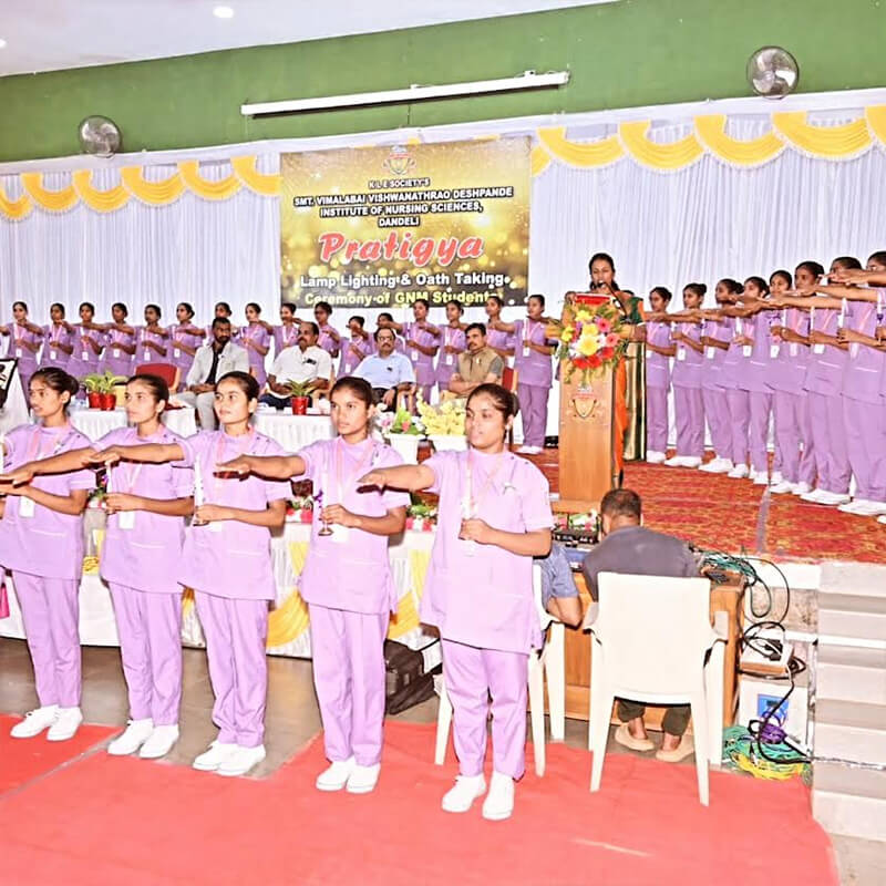 A lamp lighting and oath-taking ceremony was organized under the guidance of Principal Shri. Vinayak I. Patil for the newly admitted 17th batch GNM students at Hornbill Hall, Dandeli.