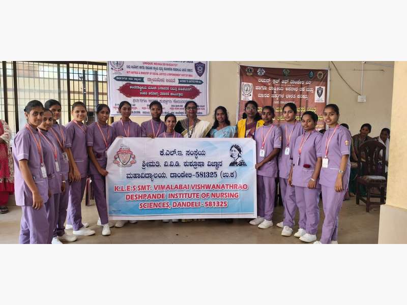 KLE Society's Smt. V.V.D. Institute of Nursing Sciences, Dandeli's GNM students participated in legal awareness program organized with the support of organizations such as the Lions Club International to educate women about their legal rights and protection under Indian law. The program aimed to create awareness about women’s rights, legal remedies, and safety measures available to them, helping women understand the laws and support systems that protect them from injustice and empower them to seek justice when needed. As part of the initiative, a free health check-up camp for women was conducted to promote women’s health and well-being. The event included guidance from legal experts and resource persons who explained important legal provisions related to women’s safety and empowerment. The program was scheduled to be held on 5th March 2026 at 8:00 AM at Annapoorneshwari Bhavan, where participants gained valuable knowledge about both their legal rights and health awareness.