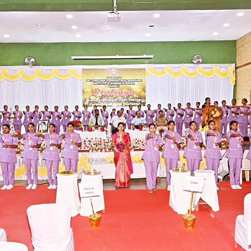 A lamp lighting and oath-taking ceremony was organized under the guidance of Principal Shri. Vinayak I. Patil for the newly admitted 17th batch GNM students at Hornbill Hall, Dandeli.