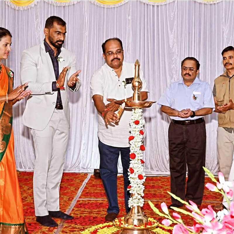 The programme was inaugurated by chief guest Shri B. N. Vasare Sir (District President, Kannada Sahitya Parishat), guests of honour Dr. S. N. Dafedar Sir (Dentist/Dental Surgeon, President, Indian Dental Association) and Shri. Sangamesh H. Veerapur Sir (Deputy Range Forest Officer, Bhagawati) by lighting the lamp. The President of the function, Shri Vinayak I. Patil Sir, delivered the presidential remarks.